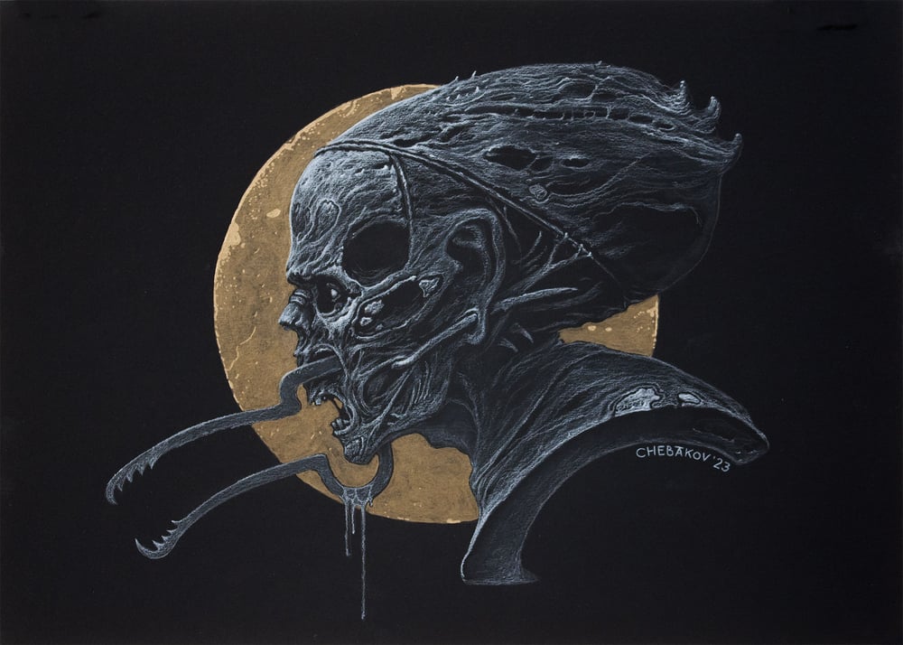 Watercolor pencil + acrylic on black paper 300 g/m2