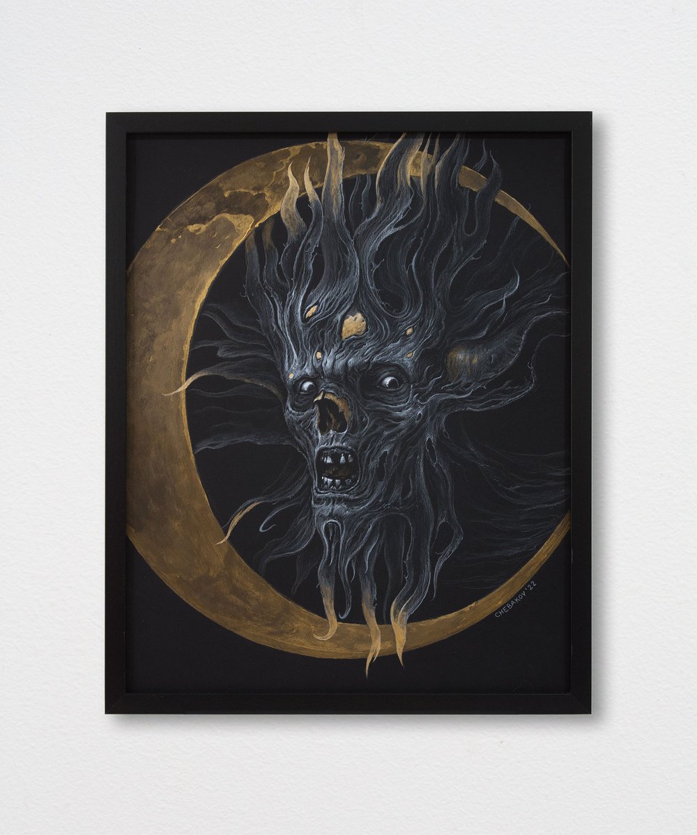 Watercolor pencil, acrylic on black paper 300 g/m2