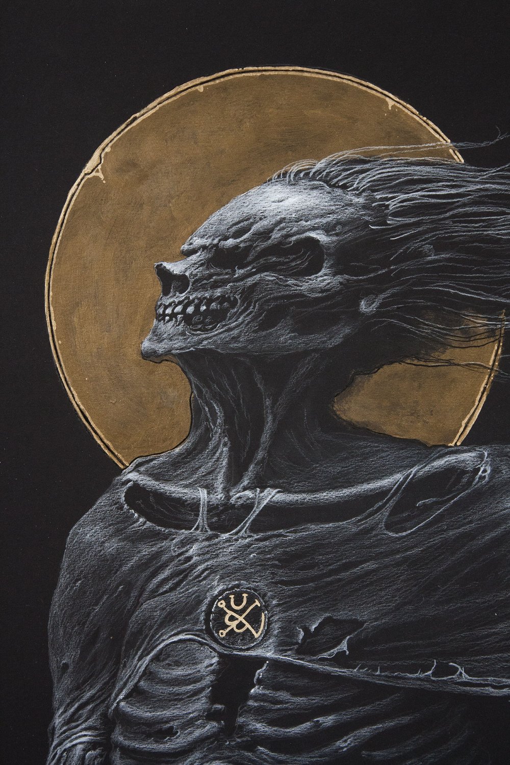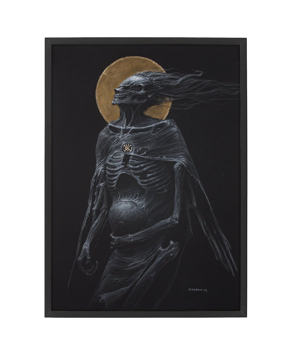 Watercolor pencil, acrylic on black paper 300 g/m2