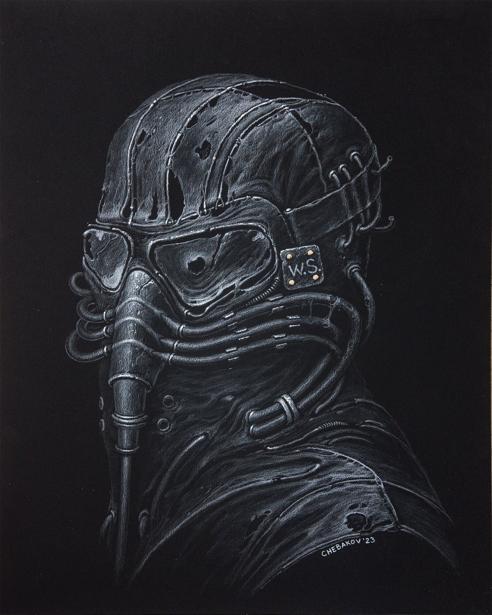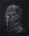 Watercolor pencil, acrylic on black paper 300 g/m2